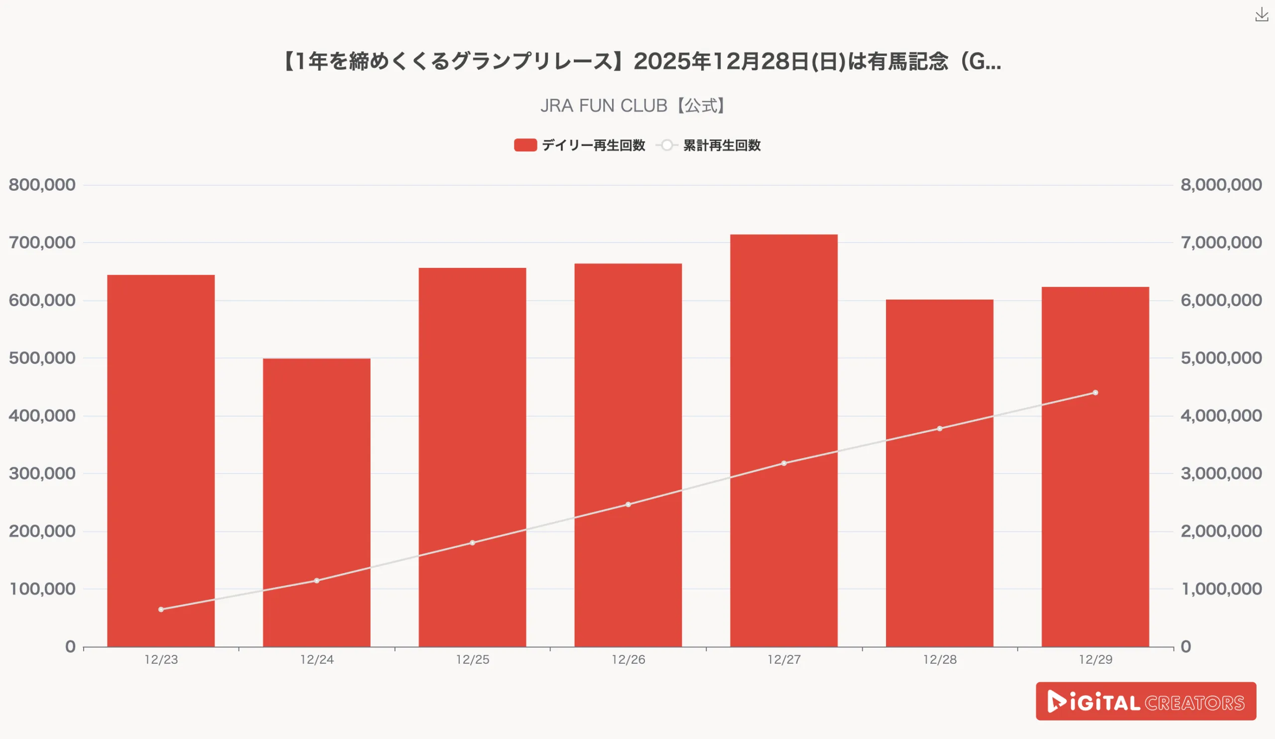 第2位は『JRA FUN CLUB【公式】』。一年を締めくくるG1レース「有馬記念」の生配信動画がランクインした。