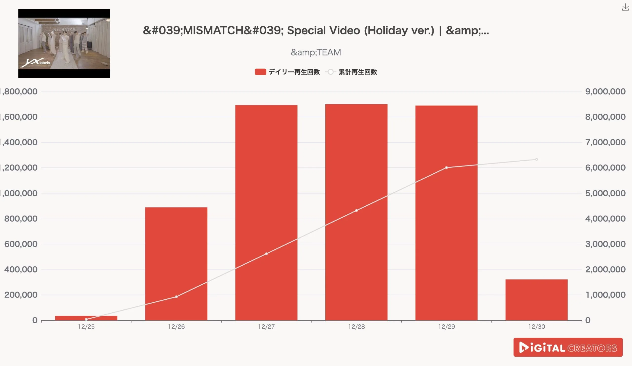 2025年12月7日~13日の週刊ランキングで圧倒的1位を獲得した&TEAMの「MISMATCH」のスペシャルビデオが1位を獲得。