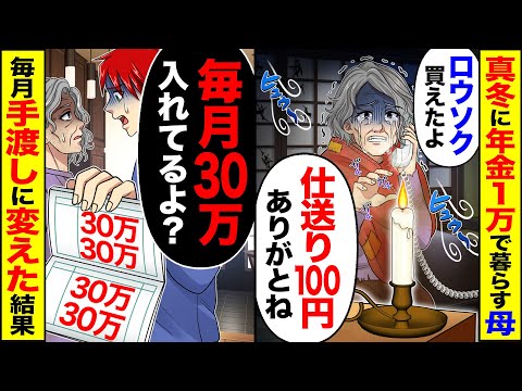 【スカッと】真冬に年金1万で暮らす母「仕送り100円ありがとね」「ロウソク暖かいよ」→「毎月30万入れてるよ」毎月手渡しに変えた結果【漫画】【アニメ】【スカッとする話】【2ch】