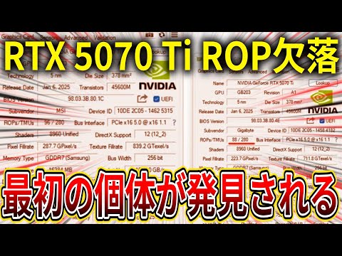 【大問題#4】NVIDIA GeForce RTX 5070 Ti ROP欠落した最初の個体が発見される