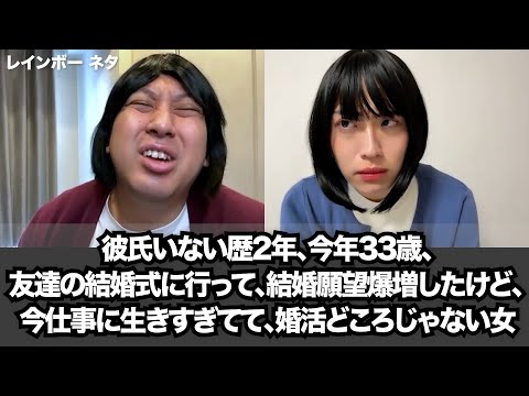【コント】彼氏いない歴2年、今年33歳、友達の結婚式に行って、結婚願望爆増したけど、今仕事に生きすぎてて、婚活どころじゃない女