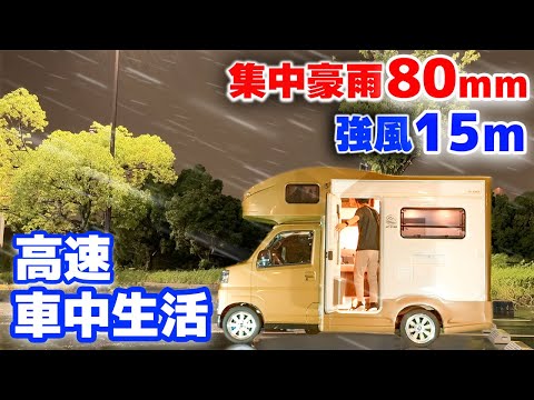 【新型ターボ軽キャン5日間車中生活】自動運転で高速道路550km旅、災害級の大雨と強風に遭遇【Happy1ターボ最終回】
