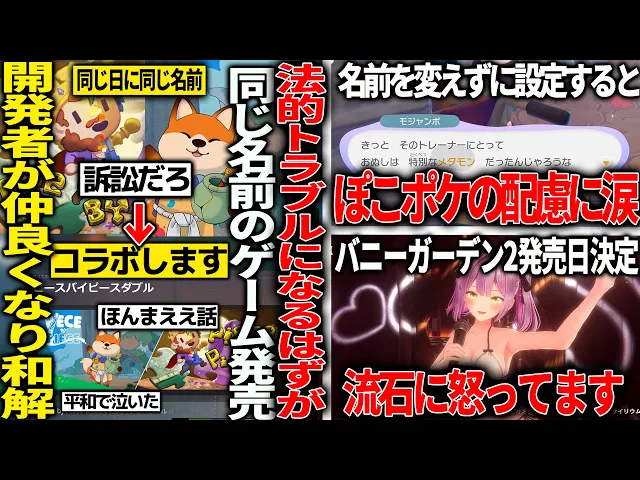 同じタイトルのゲームがほぼ同日に発売してしまい、法的トラブルに発生するはずが和解コラボして全世界が癒される/ぽこポケ、名前をメタモンにすると泣けると話題&パラスが悲劇過ぎる/バニガ2に怒ってます