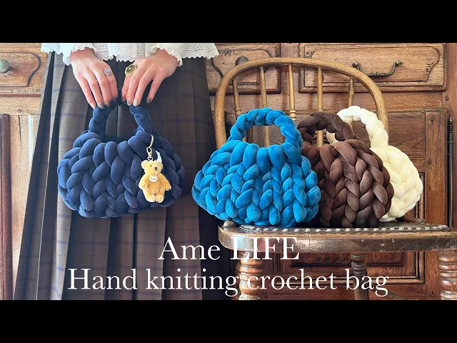冬の手仕事🧶|30分で指編みチャンキーニットバッグ|簡単マンドゥバッグの作り方| Hand knittng crochet bag