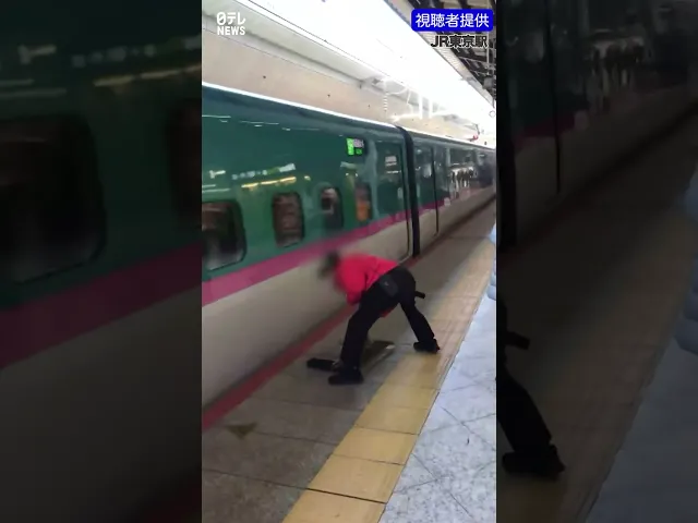 【機転】スロープつけたまま新幹線が動き出す!清掃員がファインプレー!#shorts