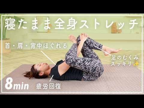 【朝夜8分】寝たまま全身ストレッチでガチガチの体をほぐそう!【疲労回復/反り腰改善/腰痛予防】