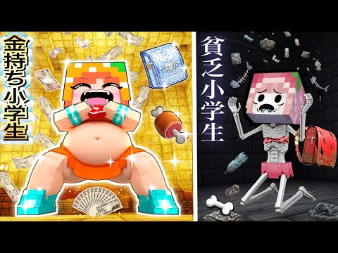 【お金持ち vs 貧乏 小学生の1日がちがいすぎる!】マイクラ/どっちが幸せ?