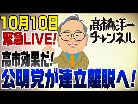 10/10緊急生配信!公明党連立離脱へ!高市効果だ