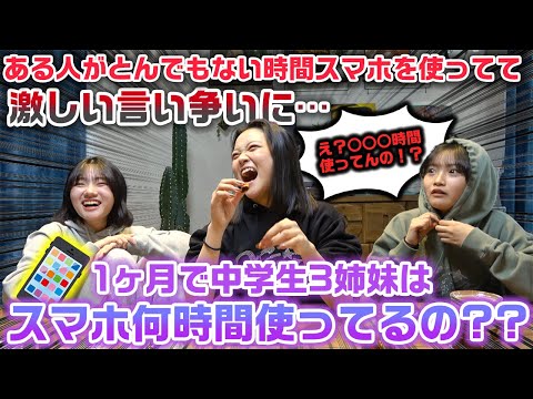 中学生3姉妹は1ヶ月でスマホ何時間使ってるの??抜き打ちでスマホのスクリーンタイムをチェックをしてどれくらいスマホを使ってるか調べてみた結果…www【ろこまこあこ】