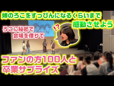 姉をメイクが落ちてすっぴんになるくらいまで感動させられる??サプライズで会場も借りてファンの方100人呼んでろこの中学卒業を祝ってみた!【卒業サプライズ】