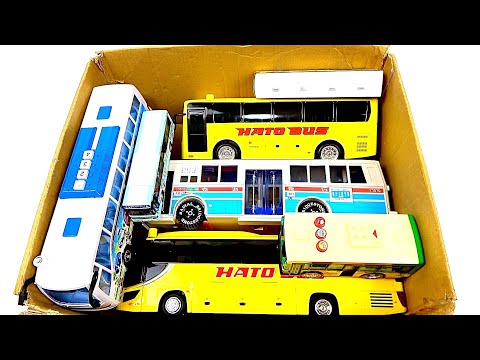 箱に集めたバスのミニカーをチェックして坂道を走行テスト!サウンド鳴らして走る