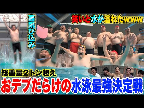 【総重量2トン】100kg超えのおデブだけで水泳大会したら面白すぎて笑いと水が溢れたwww