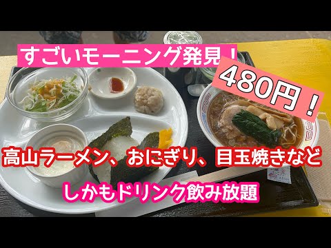 すごいモーニング発見!高山ラーメンがついて480円!しかもドリンク飲み放題