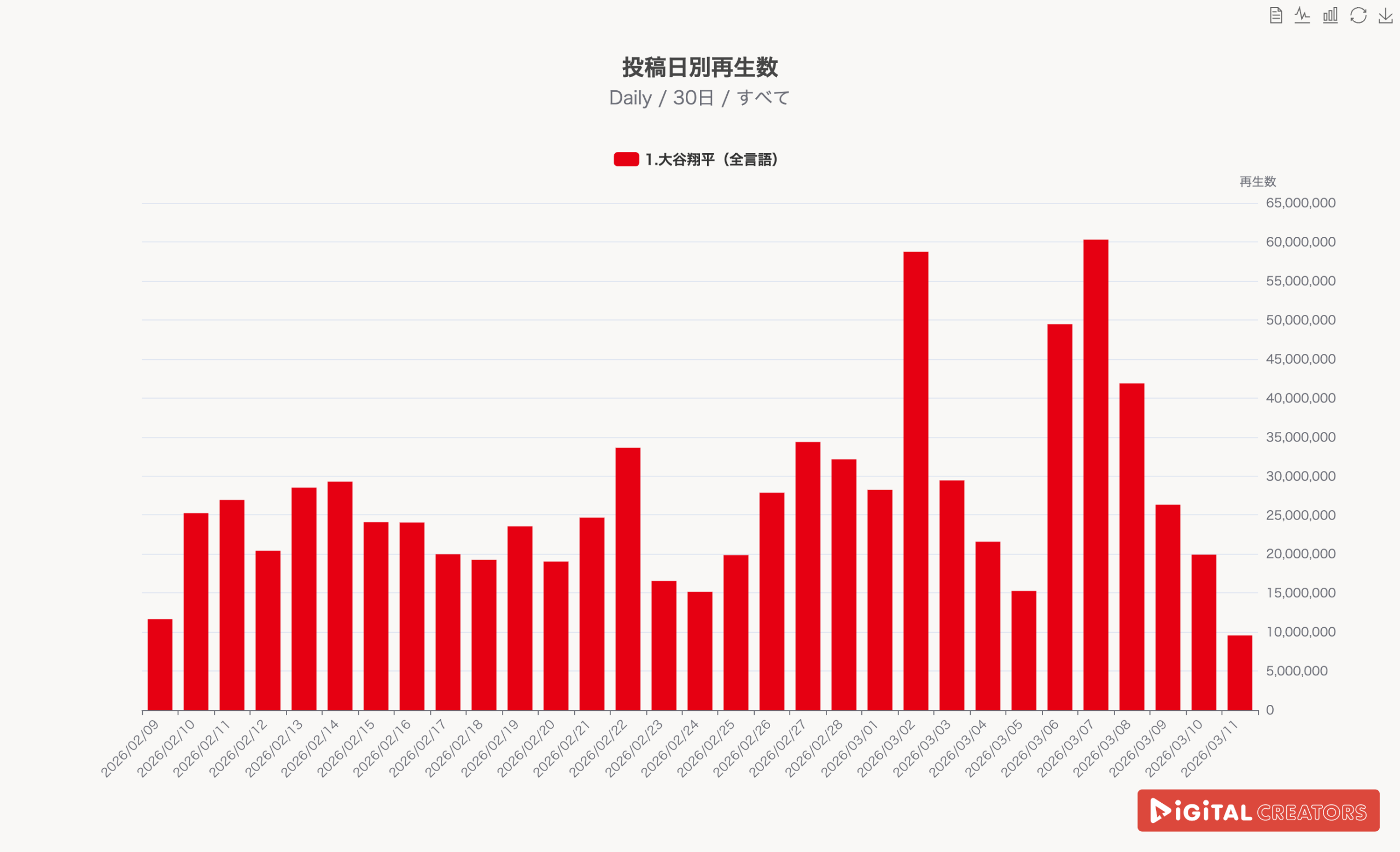 大谷翔平選手に関する動画はWBC以前からも1日2000万〜25000万程度再生されており、その人気ぶりが伺えます。