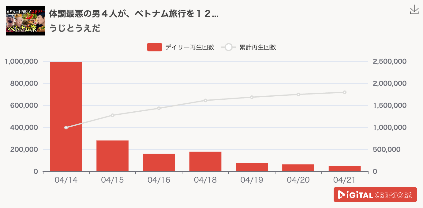 ベトナム旅行動画のpart2が第1位にランクイン。(「【怒・悲・勃】ずっと情緒不安定な30代男4人のベトナム旅行。」)