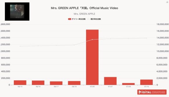 2日、『Mrs. GREEN APPLE』は同日にリリースされた新曲「天国」のMVを公開した。同曲は映画「#真相をお話しします」の主題歌である。この映画にはMrs. GREEN APPLEのボーカルである大森元貴が出演していることで大きな話題となった。