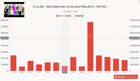 16日、『THE FIRST TAKE』に「ちゃんみな」が登場。自身がプロデューサーとして参加したガールズグループオーディションプロジェクト「No No Girls」のファイナリスト10名がサプライズ登場し、同オーディションのファイナルでも披露された「SAD SONG」をパフォーマンスした。