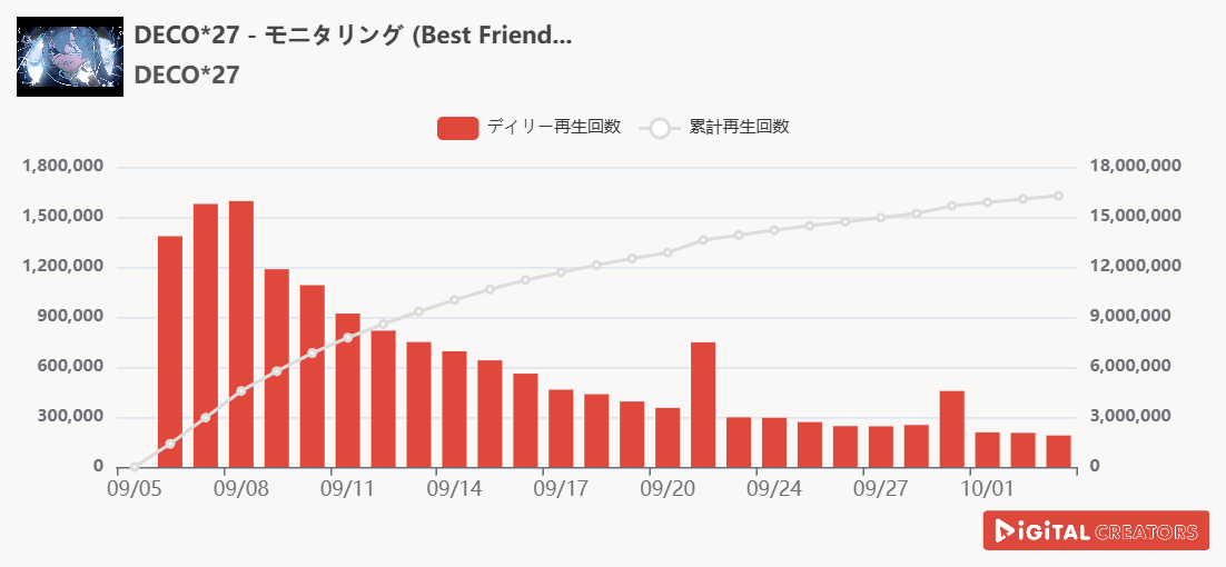 2025年9月5日、『DECO*27』の新作「モニタリング(Best Friend Remix) fest.初音ミク」のMVがYouTubeで公開された。公開から約1ヶ月で1500万回再生を獲得している。