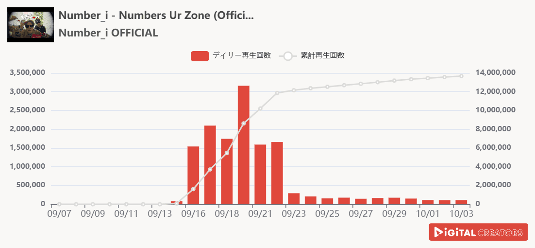 大人気男性アーティストグループ「Number_i」が9月15日に配信リリースした新曲「Numbers Ur Zone」のMVを公開した。公開から半月で1300万回再生を獲得している。今楽曲は9月22日に発売されたセカンドアルバム「No.Ⅱ」に収録されている曲としても注目を集めている。