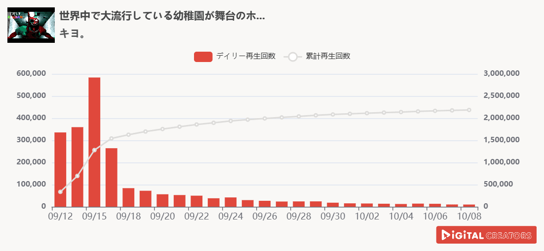 TOP3を獲得したのは『キヨ。』。TOP10ランクインのキヨの動画6本の合計再生回数驚異の1100万回越え!