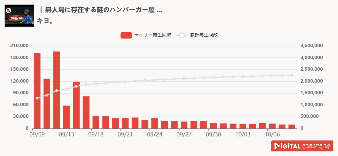 尚、対象は、企業公式チャンネルやニュース動画を除く、1分以上の動画。(切り抜きチャンネルを除く)※データ集計は10月1日で、広告による再生数含まれる可能性があります。