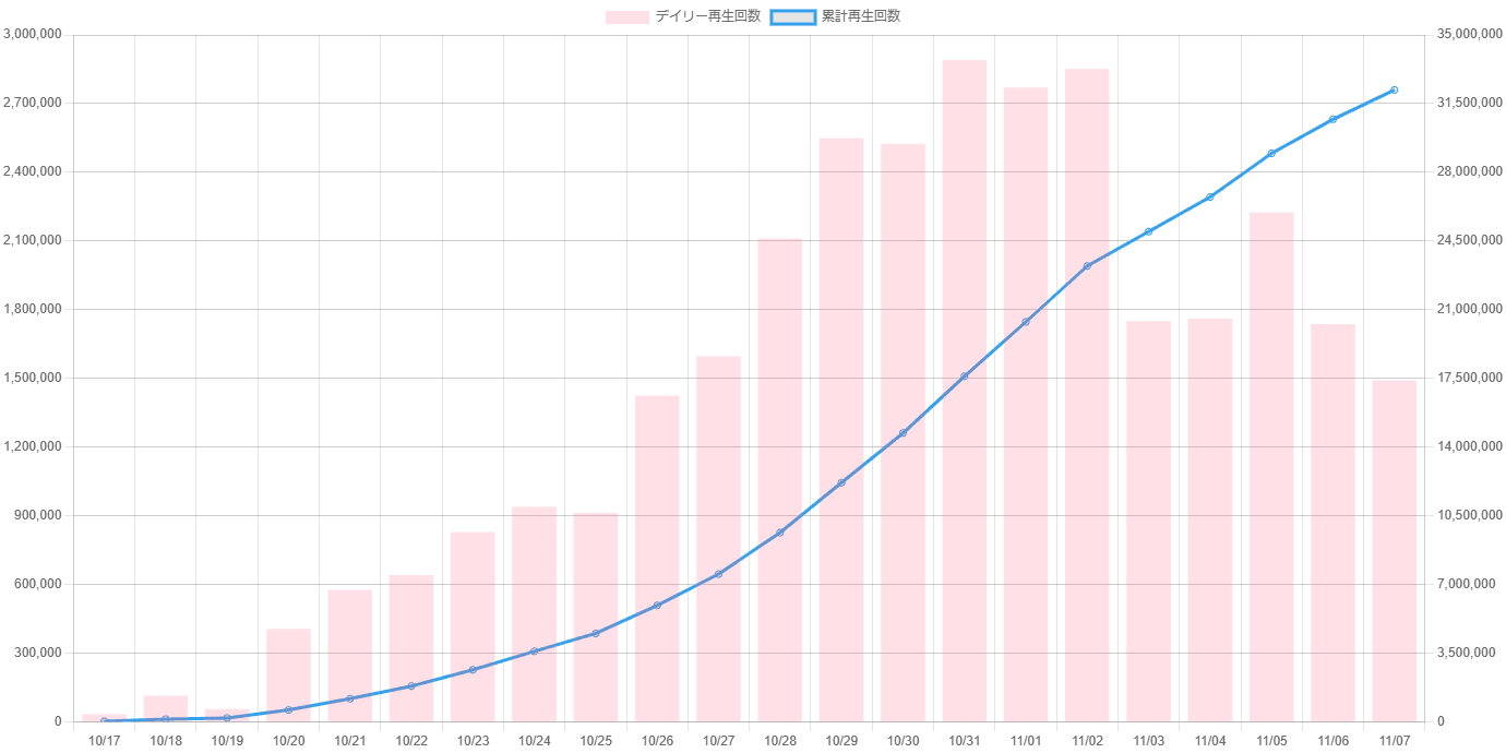 なお対象は、企業公式チャンネルやニュース動画を除く、1分以上の動画(切り抜きチャンネルを除く)。※データ集計は11月1日で、広告による再生数も含まれる可能性があります。1分以上3分以下でかつタイトルに#shortsと入っている動画につきましては、ショート動画扱いとさせていただきます。