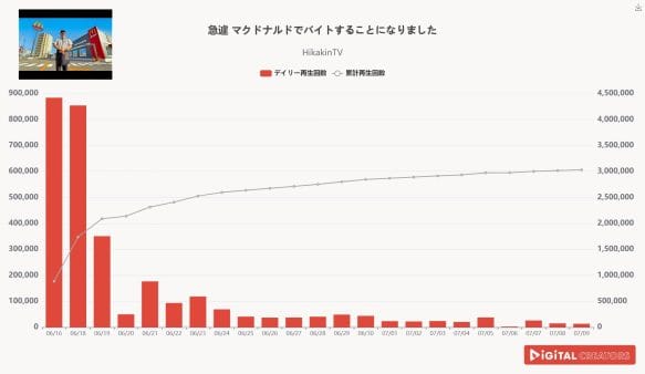 6月の月間動画再生数マルチYouTuberランキングを発表!『ヒカル(Hikaru)』『進撃のノア』との結婚報告動画がランクイン!交際0日婚に迫る!『HikakinTV』大人気アルバイト企画でマクドナルドでアルバイト!Nintendo Switch 2の開封動画も!