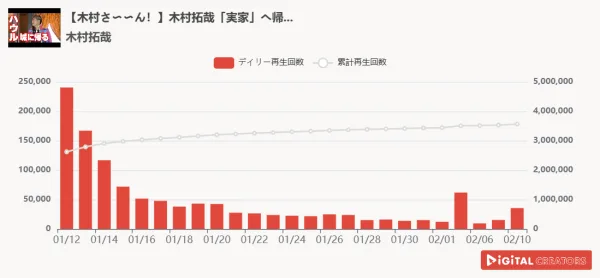 なお対象は、企業公式チャンネルやニュース動画を除く、1分以上の動画(切り抜きチャンネルを除く)。※データ集計は1月30日で、広告による再生数も含まれる可能性があります。