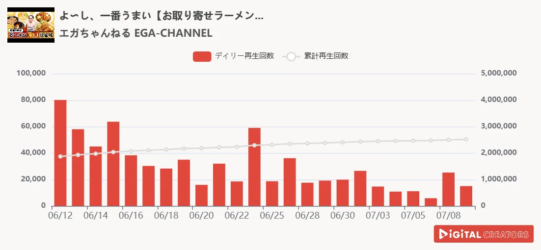 尚、対象は、企業公式チャンネルやニュース動画を除く、1分以上の動画。(切り抜きチャンネルを除く)※データ集計は7月5日で、広告による再生数含まれる可能性があります。