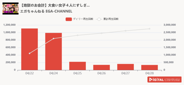 尚、対象は、企業公式チャンネルやニュース動画を除く、1分以上の動画。(切り抜きチャンネルを除く)※データ集計は4月27日で、広告による再生数含まれる可能性があります。