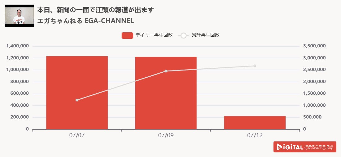 尚、対象は、企業公式チャンネルやニュース動画を除く、1分以上の動画。(切り抜きチャンネルを除く)※データ集計は7月13日で、広告による再生数含まれる可能性があります。
