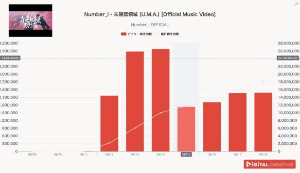 この楽曲は、日米iTunesミュージックビデオ総合ランキングで1位を獲得する快挙を達成した。これからもNumber_iは、私たちを“未知の領域”へ連れて行ってくれるだろう。