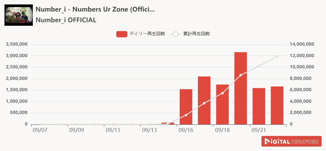 2位を獲得したのは『Number_i OFFICIAL』。9月15日に配信リリースした新曲「Numbers Ur Zone」のMVを公開した。今楽曲は9月22日に発売されたセカンドアルバム「No.Ⅱ」に収録されている曲としても注目を集めている。