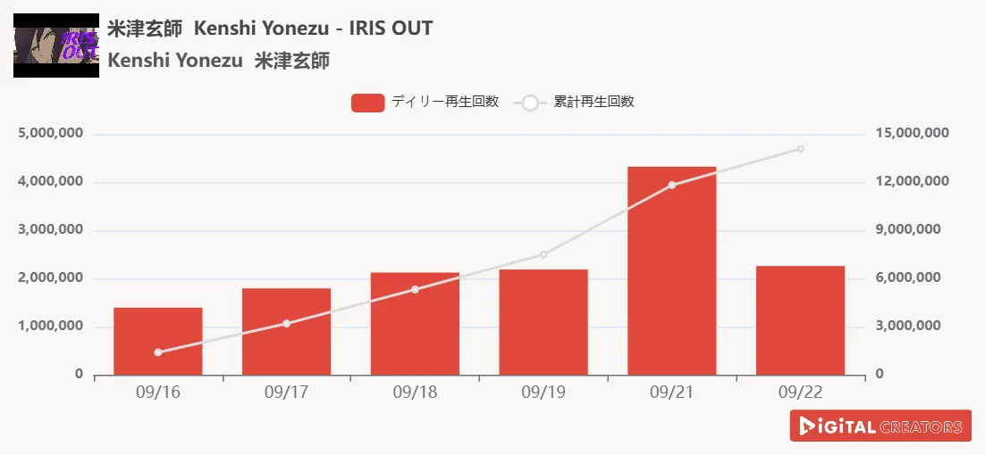 週間YouTube総合再生回数ランキングを発表!米津玄師、新曲「IRIS OUT」MV公開!劇場版「チェンソーマン レゼ篇」の主題歌としても話題‼Number_i、新曲「Numbers Ur Zone」MV公開!ヒカル、進撃のノアとオープンマリッジ報告