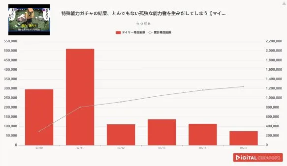 尚、対象は、企業公式チャンネルやニュース動画を除く、1分以上の動画。(切り抜きチャンネルを除く)※データ集計は7月13日で、広告による再生数含まれる可能性があります。