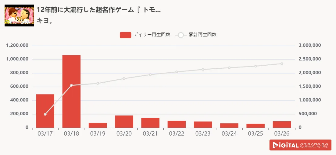 尚、対象は、企業公式チャンネルやニュース動画を除く、1分以上の動画。(切り抜きチャンネルを除く)※データ集計は3月25日で、広告による再生数含まれる可能性があります。