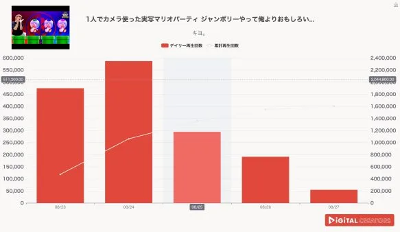 尚、対象は、企業公式チャンネルやニュース動画を除く、1分以上の動画。(切り抜きチャンネルを除く)※データ集計は8月24日で、広告による再生数含まれる可能性があります。