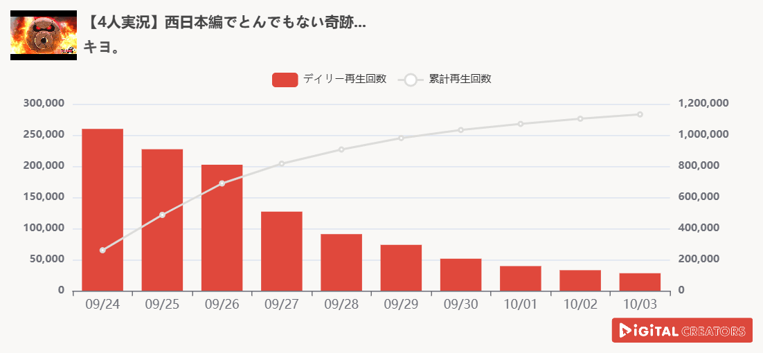 尚、対象は、企業公式チャンネルやニュース動画を除く、1分以上の動画。(切り抜きチャンネルを除く)※データ集計は9月28日で、広告による再生数含まれる可能性があります。