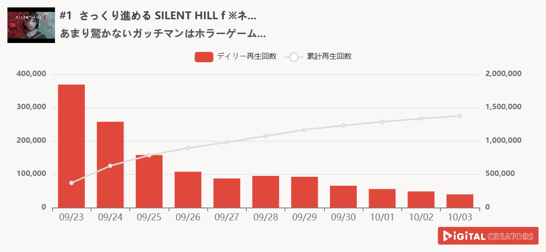 週間ゲーム実況YouTube再生回数ランキングを発表! シリーズ最新作「SILENT HILL f」実況動画公開‼世界累計出荷本数100万本を突破‼ガッチマン、チャンネル登録者数200万人突破‼キヨ、桃鉄2先行プレイ‼
