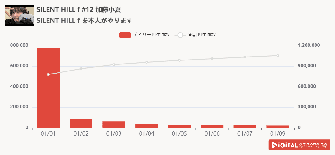 3位を獲得したのは『SILENT HILL fを本人がやります』。人気ホラーゲーム『SILENT HILL f』の主人公・深水雛子の声優およびモデルを務める加藤小夏が、『SILENT HILL f』の実況配信を公開した。