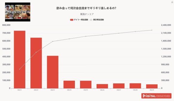 尚、対象は、企業公式チャンネルやニュース動画を除く、1分以上の動画。(切り抜きチャンネルを除く)※データ集計は4月27日で、広告による再生数含まれる可能性があります。