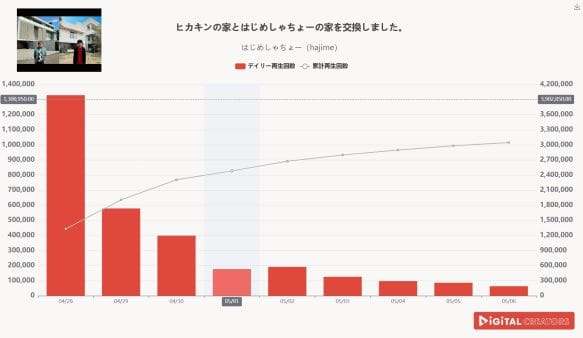尚、対象は、企業公式チャンネルやニュース動画を除く、1分以上の動画。(切り抜きチャンネルを除く)※データ集計は5月4日で、広告による再生数含まれる可能性があります。