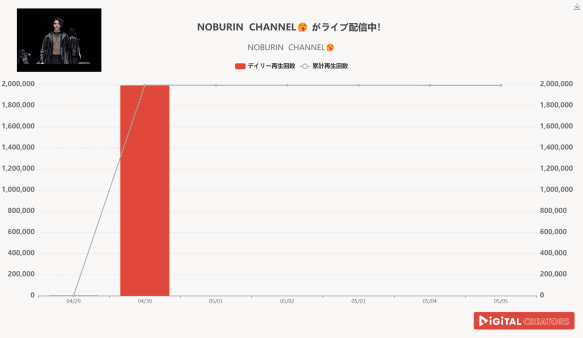 また、同時接続数を画面に表示し、視聴者数が増えるたびに「Thank you」としきりに感謝を伝えるノブリンであった。