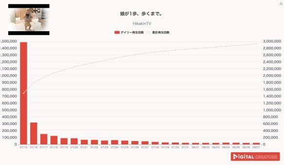 1位、3位をを獲得したのは『HikakinTV』。7月25日にグランドオープンした新テーマパーク「ジャングリア沖縄」の先行体験レビュー動画を公開した。また、愛娘・通称「ミニキン」の成長過程をまとめた動画も公開し、一歩目を踏み出す感動的な瞬間を動画で捉えた。