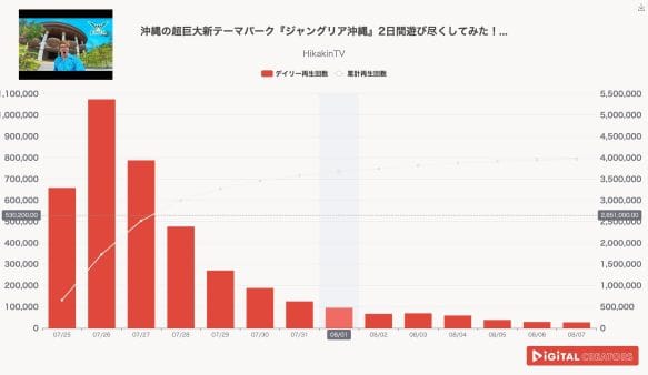 月間マルチYouTube再生回数ランキングを発表!『HikakinTV』、話題沸騰の「ジャングリア沖縄」を先行体験!ミニキンちゃんの成長動画も3位にランクイン!ヒカル、親友・青笹氏への想いを綴る。
