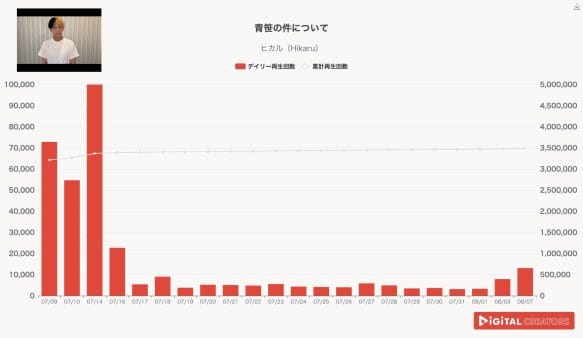 尚、対象は、企業公式チャンネルやニュース動画を除く、1分以上の動画。(切り抜きチャンネルを除く)※データ集計は8月2日で、広告による再生数含まれる可能性があります。