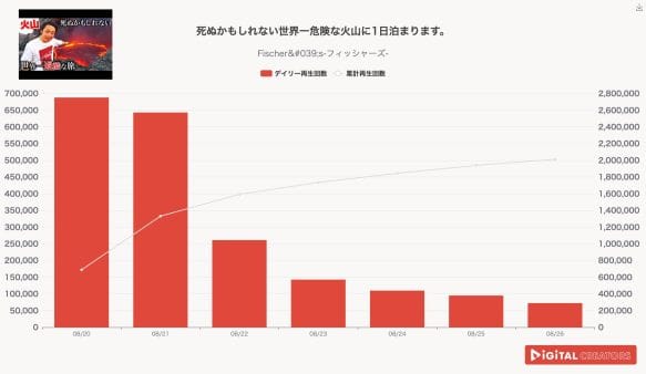 今週は『Fischer’s-フィッシャーズ-』が3位を獲得した。メンバーのシルクロード、ザカオ、ンダホが出演し、「世界一過酷なツアー」に参加して火山の火口の横で一泊をするという前代未聞の企画動画を公開した。