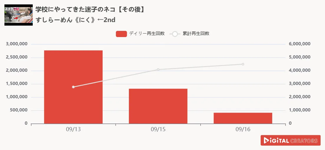 1位は『すしらーめん《にく》←2nd』。自らの持つ学校に迷い込んだ子猫のこてんのその後を公開!総合でも3位にランクイン!