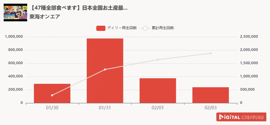 尚、対象は、企業公式チャンネルやニュース動画を除く、1分以上の動画。(切り抜きチャンネルを除く)※データ集計は2月1日で、広告による再生数含まれる可能性があります。