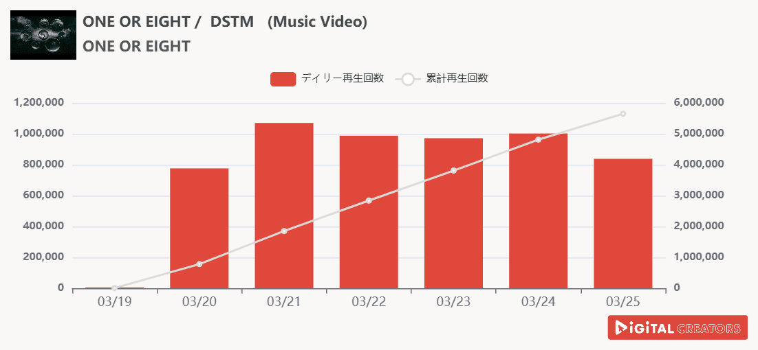 日本人8人組のボーイズグループ『ONE OR EIGHT』の新曲「DSTM」の公式MVが2位にランクインした。この楽曲は配信シングルとして3月19日に公開されたものである。